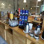 De gasten kunnen van hun ochtendmaaltijd in het restaurant genieten.